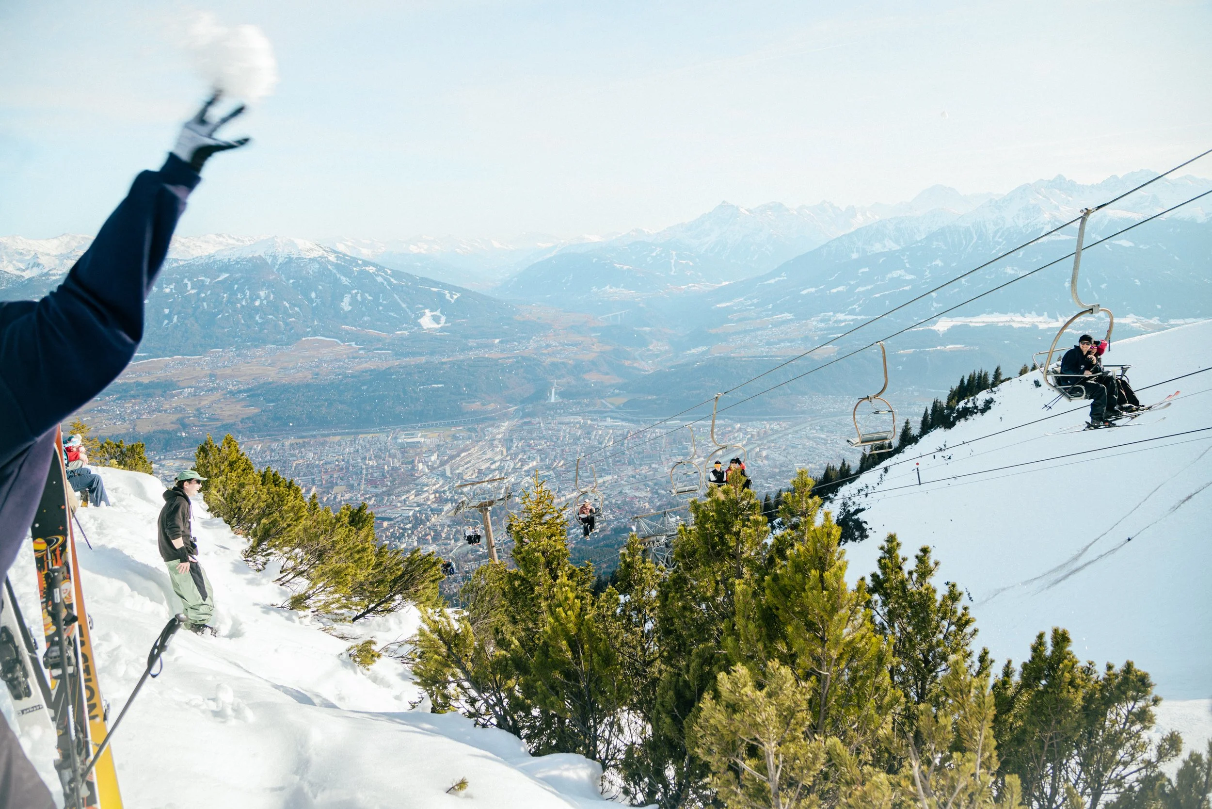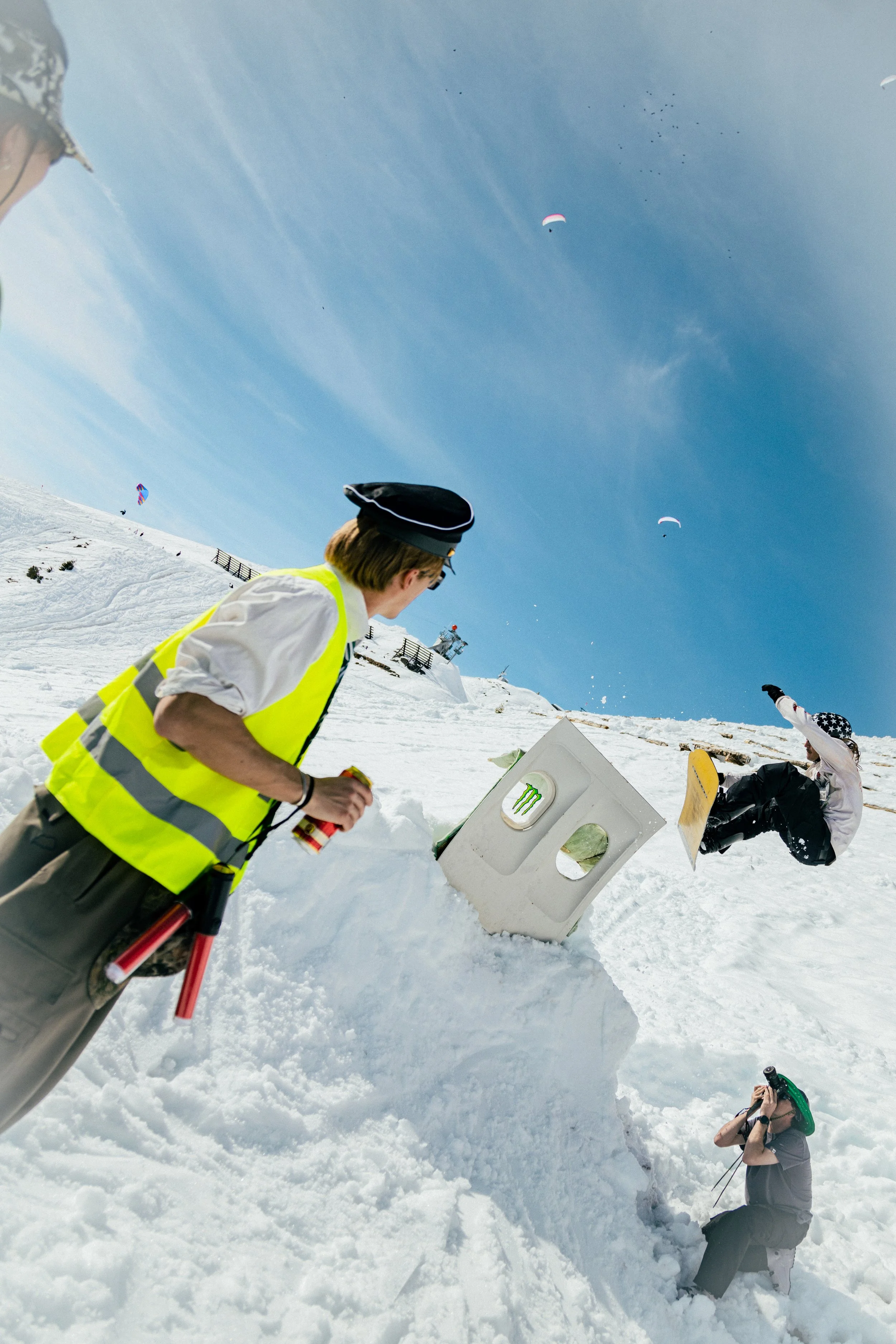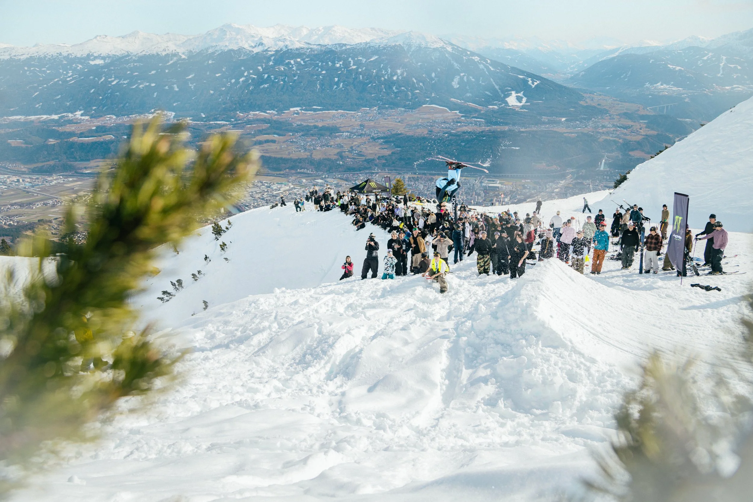 On a slushy spring day above Innsbruck, Gmon Airlines turned Nordkette into a full-blown circus. Just a few minutes by bus from the city center, Nordkette is basically the backyard playground for a huge part of the Innsbruck ski community, which made it the perfect setting for this kind of chaos.