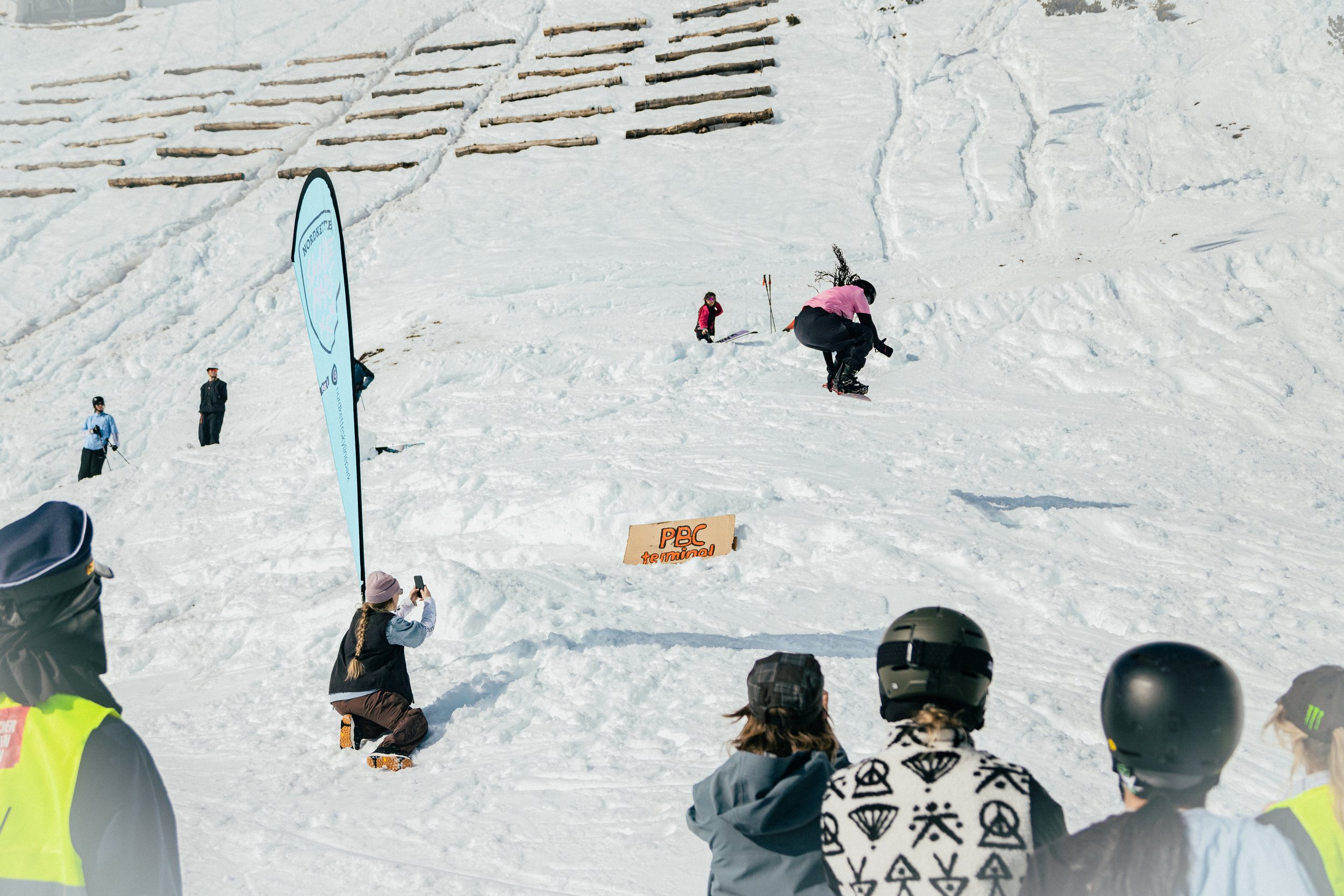 Right in the mix, the Peanut Butter Club crew added their own energy to the slope. As a snow community for women, trans, non-binary, and gender expansive folks, their presence brought a different kind of vibe. It was proof that even when a session feels chaotic, intense, or a little intimidating to step into, the right people can turn it into something welcoming and shared.